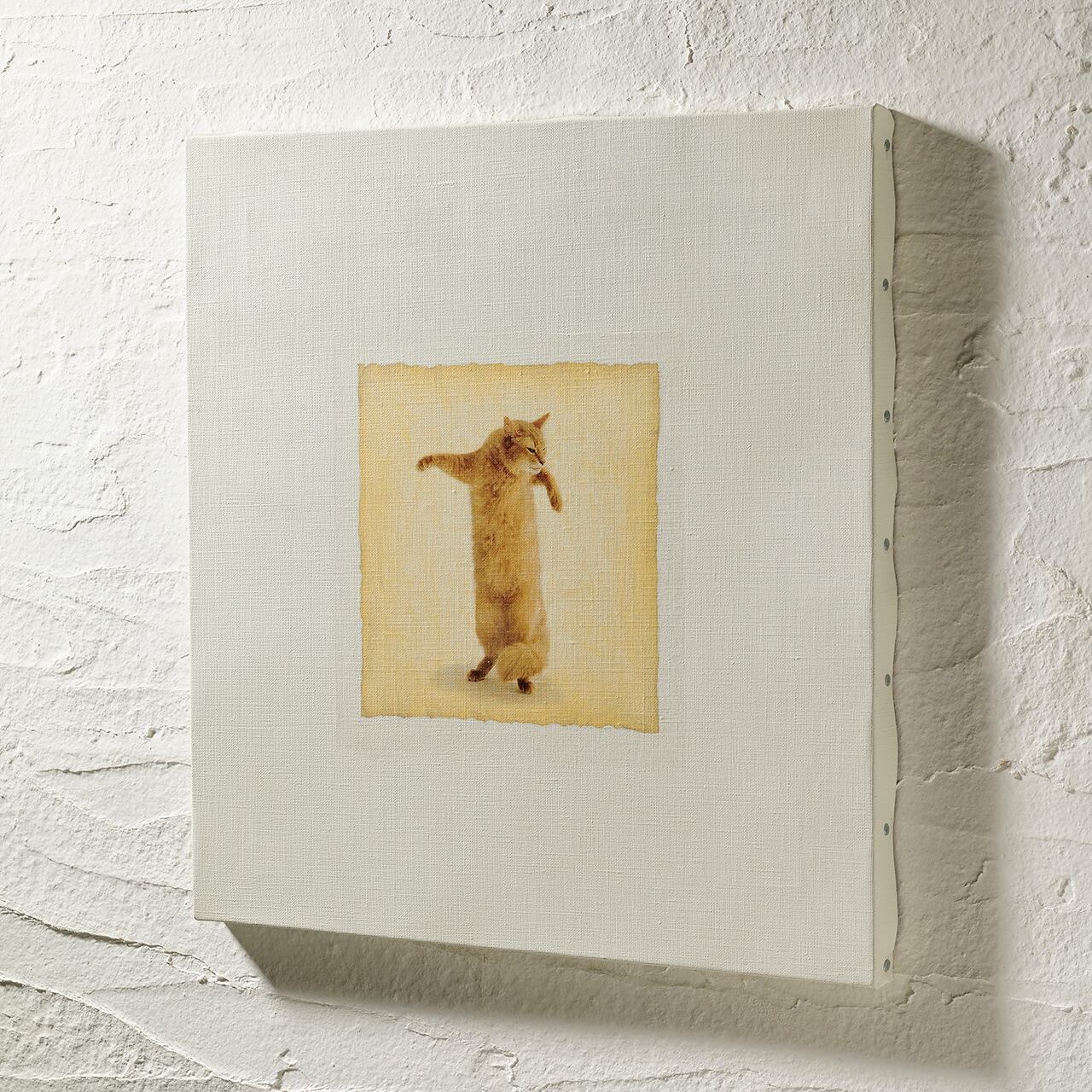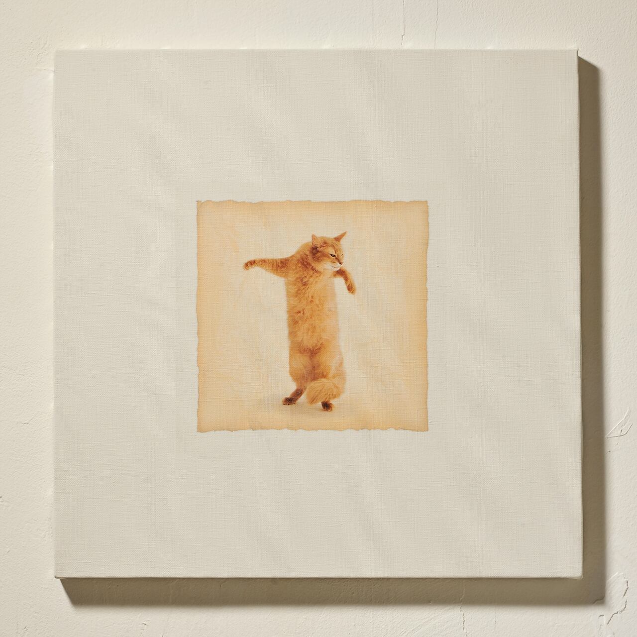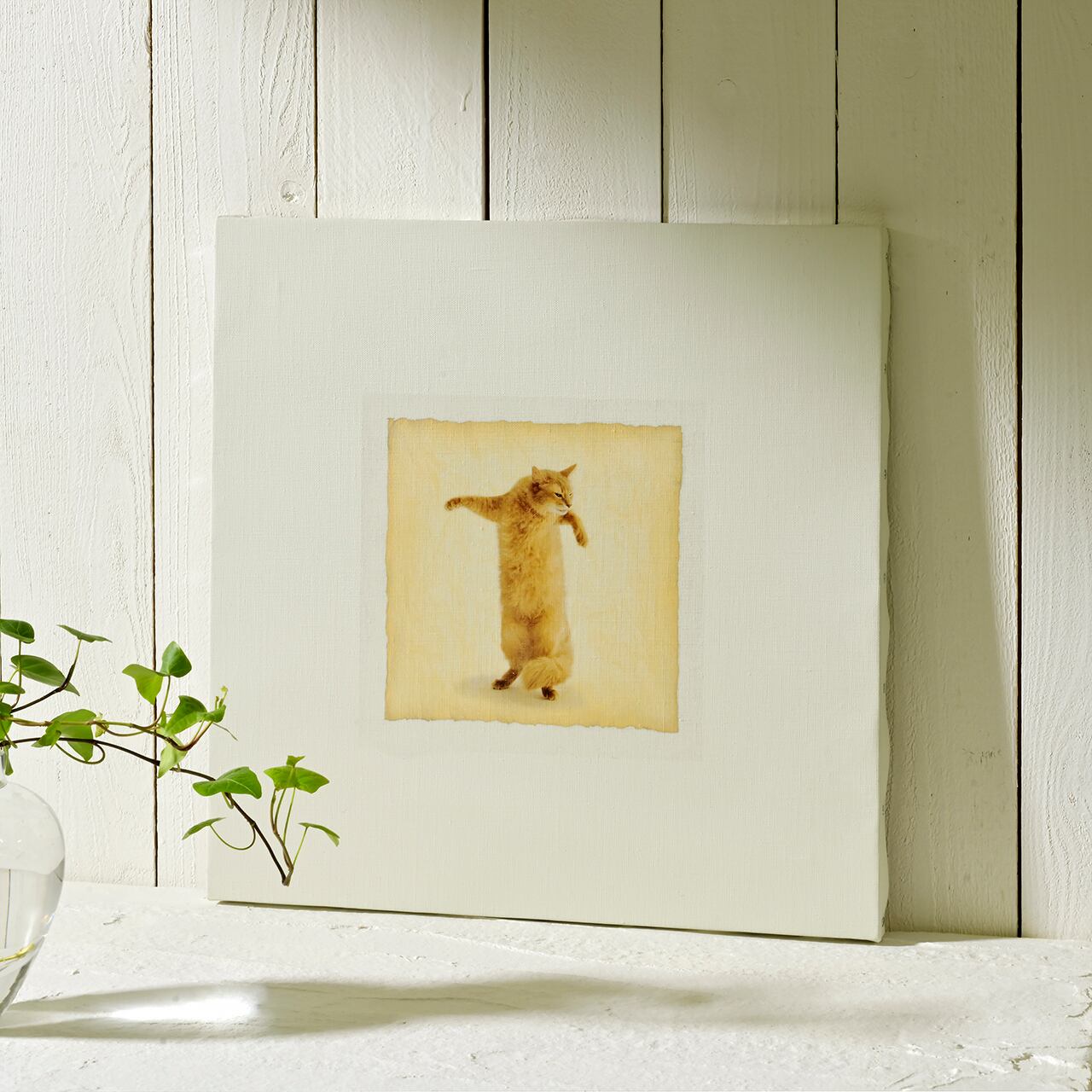 キャンバスボードに愛らしい猫の動きのある姿を転写したアートパネルです。オリジナルの猫の写真を使用しており、ハンドメイドのため仕上がりが1点1点異なります。